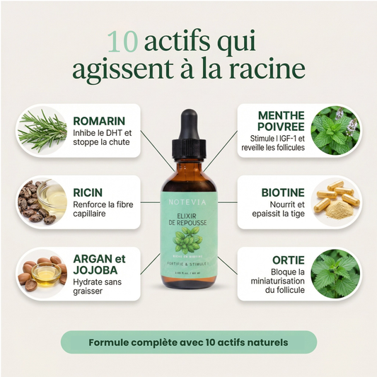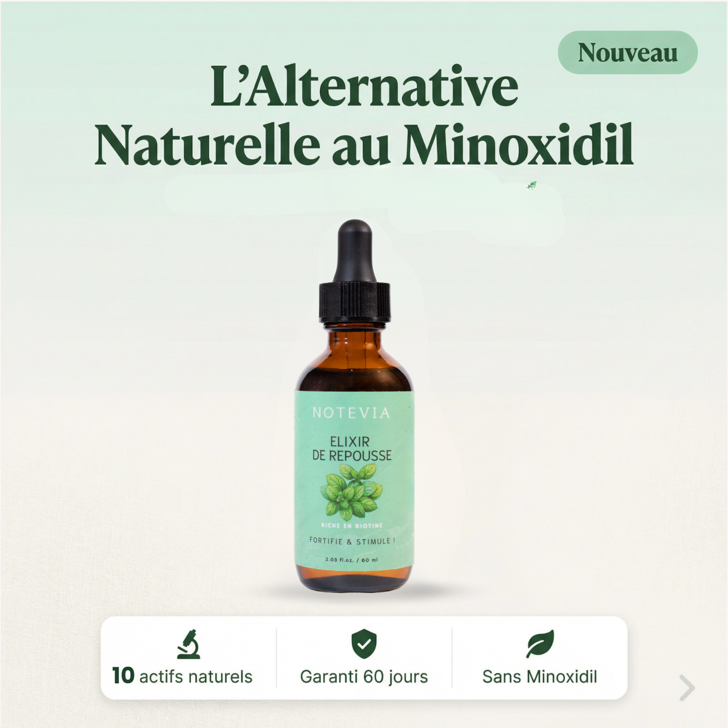 Chez Notevia, nous croyons au pouvoir de la nature pour revitaliser vos cheveux. Nos produits sont formulés sans produits nocifs, uniquement à partir d'ingrédients naturels soigneusement sélectionnés. Chaque formule est le fruit de longues recherches sur les meilleures pratiques et ingrédients pour favoriser le bien-être et la repousse de vos cheveux.